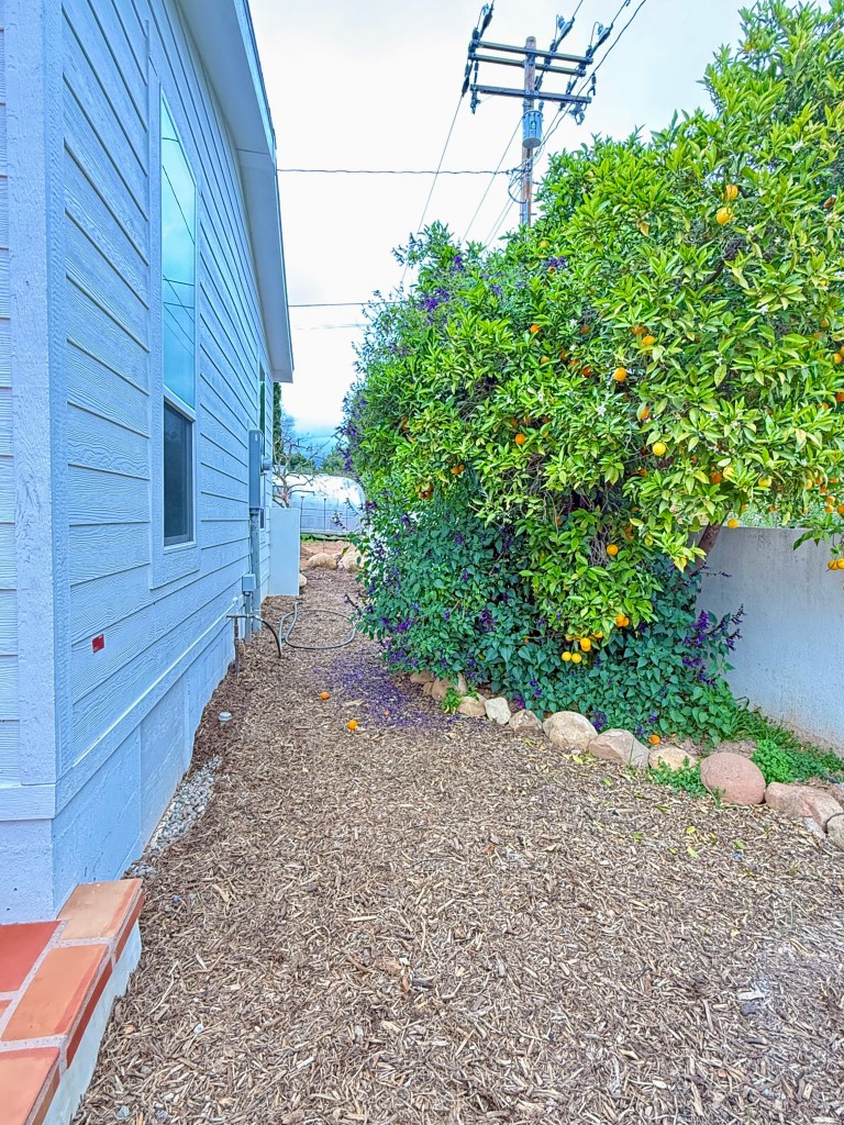 Step outside to enjoy a charming front patio finished with traditional Saltillo tile, along with a private fenced backyard featuring fruit trees, perfect for relaxing, gardening, or entertaining.